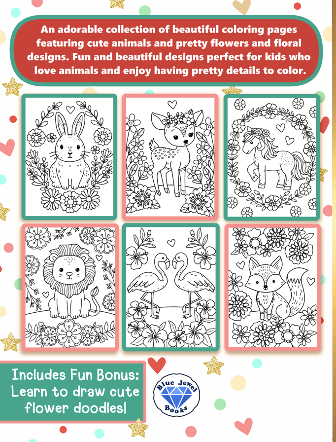 🌟This book includes a stunning collection of cute animals and gorgeous flowers and floral designs. Fun and beautiful designs for kids who love pretty details to color. Includes 50 unique coloring pages.