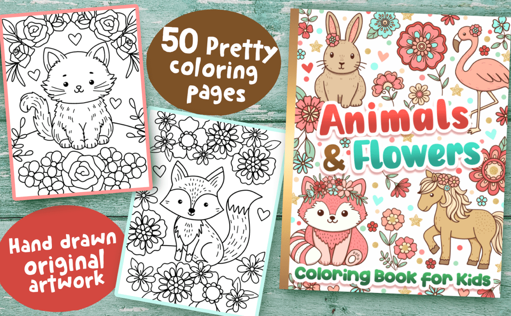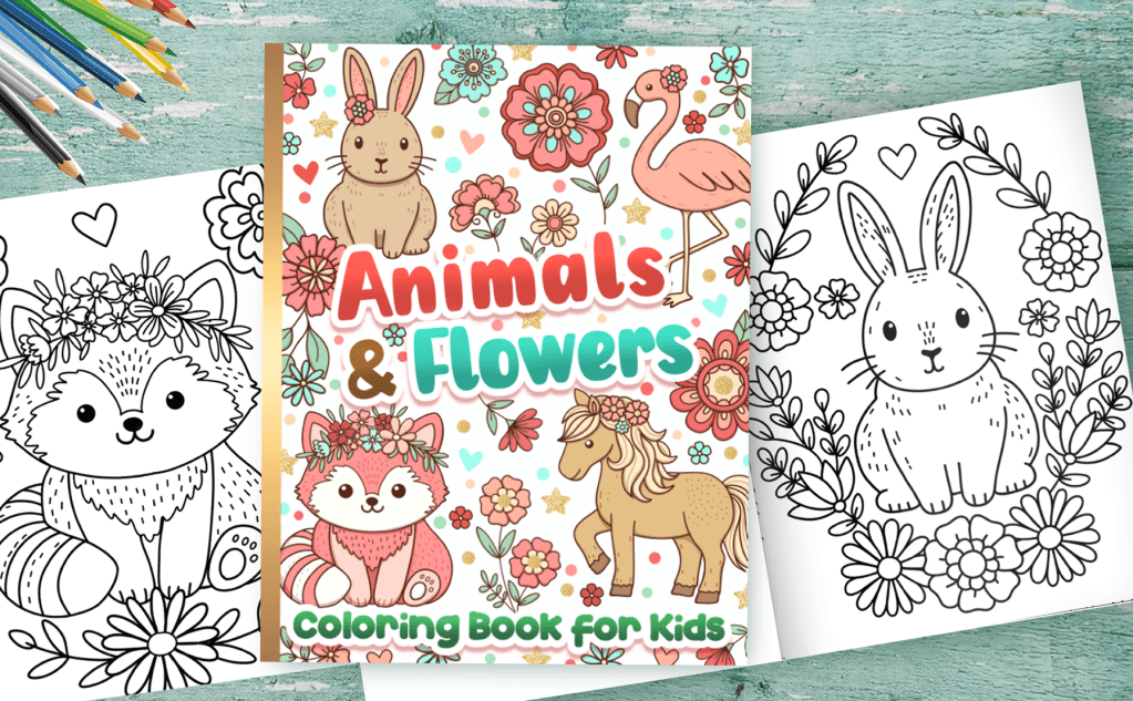 Animals & Flowers Coloring Book for Kids