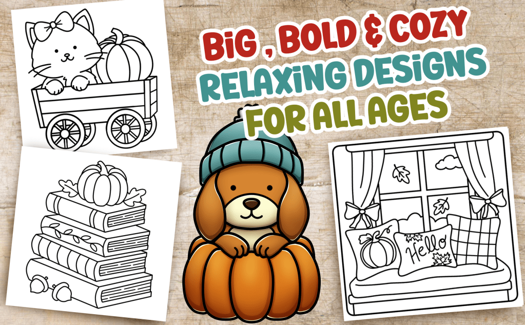 Big, bold and easy coloring pages offer an easy and fun coloring experience without a big time commitment. No overwhelming details or complicated designs. While not difficult, our designs have cute details and are not too easy, plain or boring either.