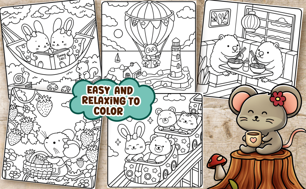Big, bold and easy coloring pages offer an easy and fun coloring experience without a big time commitment. No overwhelming details or complicated designs. While not difficult, our designs have cute details and are not too easy, plain or boring either.